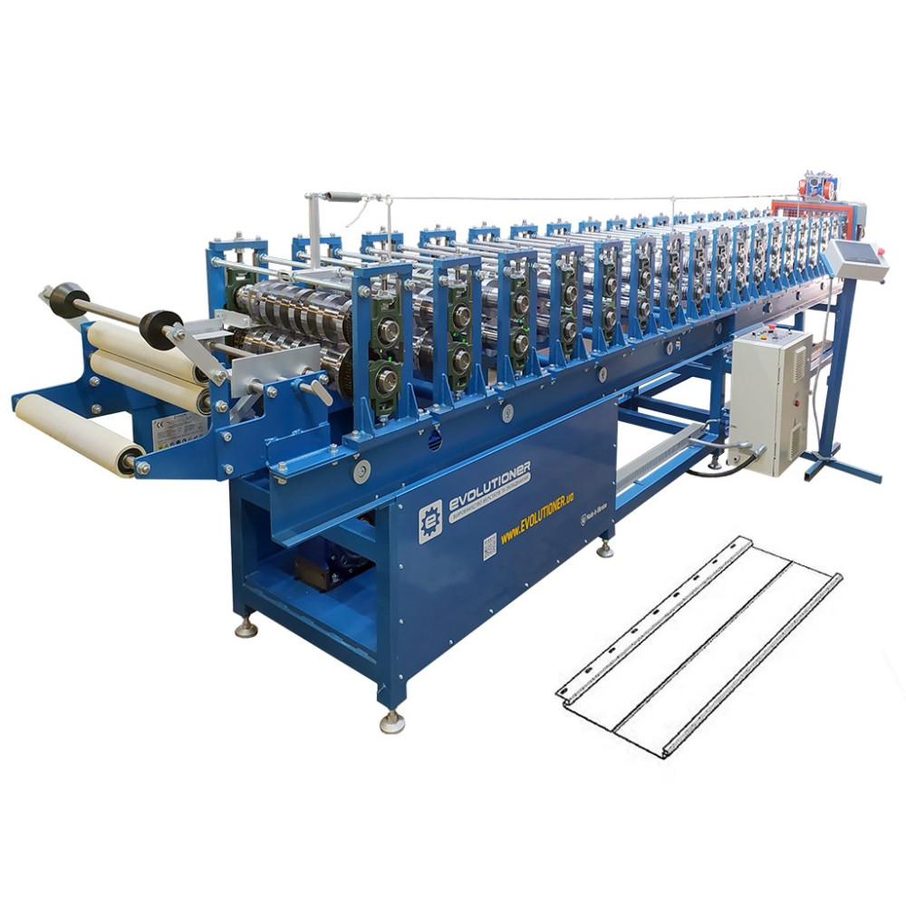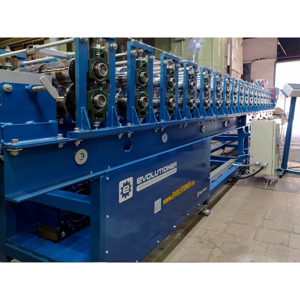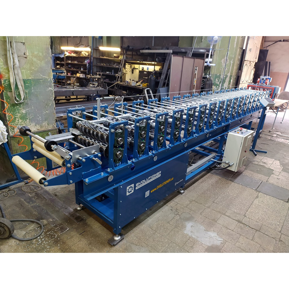 Линия для производства металлического сайдинга SPM-2 оснащена оснасткой для вырубки крепежных отверстий на краю панели.Прокатная часть станка состоит из 18 пар прокатных роликов обеспечивая высокое качество получаемой продукции.