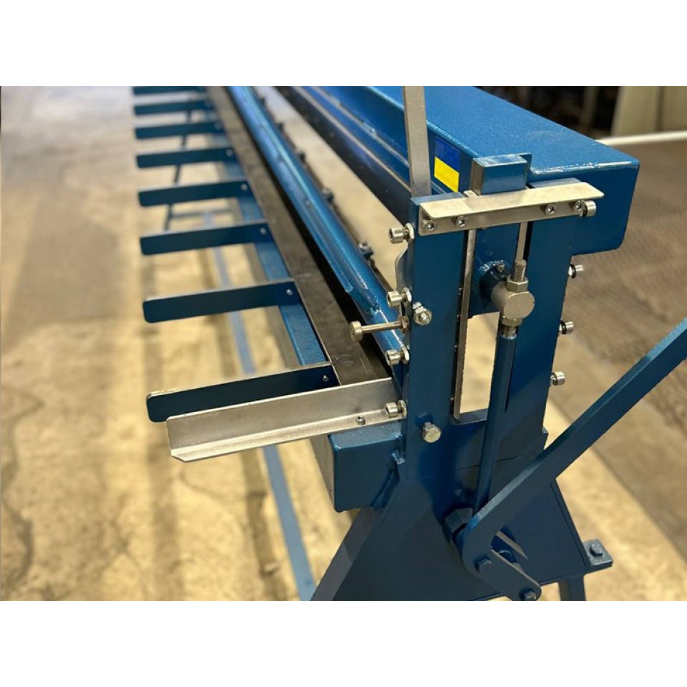 Рабочая длина станка составляет максимум 2550мм. Гильотина оборудована системой предварительного прижима металла, за счет которой металл предварительно прижимается перед резкой чем обеспечивается его фиксация и отсутствие смещений во время реза. Как правило, гильотинные ножницы НГ 2550х1 нашего производства чаще всего используется при выполнении подготовительных работ по нарезке и раскрою листового и рулонного металла на заготовки необходимых размеров. Данные заготовки в последующем могут быть использованы при выполнении гибочных операций на ручных листогибах, вальцевании металла на листогибочных вальцах, прокатки разнообразных профилей и кровельных картин на прокатных станках и т.д. Гильотина НГ 2550х1 оборудована задними упорами, позволяющими устанавливать необходимую длину листа который необходимо резать. Металл на предприятие может поступать в рулонах или листах, если металл поступает в рулонах, то он с помощью разматывателя рулонного металла подается к гильотине и уже с помощью нее производится рез. Если же металл поступает на предприятие уже в листах, то его с помощью гильотины его могут нарезать на более мелкие заготовки для дальнейшей работы.