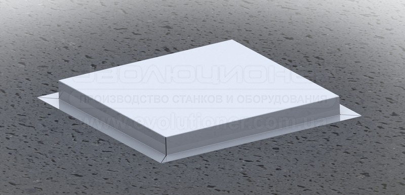 Вырубные пресса под сложные кассеты. Фасадная кассета изготавливаемая с данной высечкой угла исключает попадание воды внутрь благодаря тому что углы на фасаде кассеты закрыты. Внутри одного из углов выполнен радиусный вырез что предотвращает смятие металла на углах кассеты в процессе гибки.