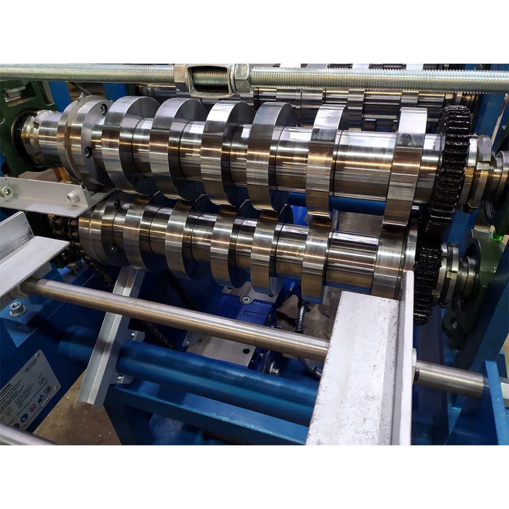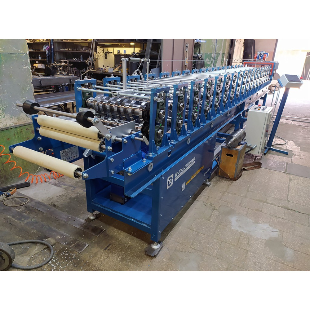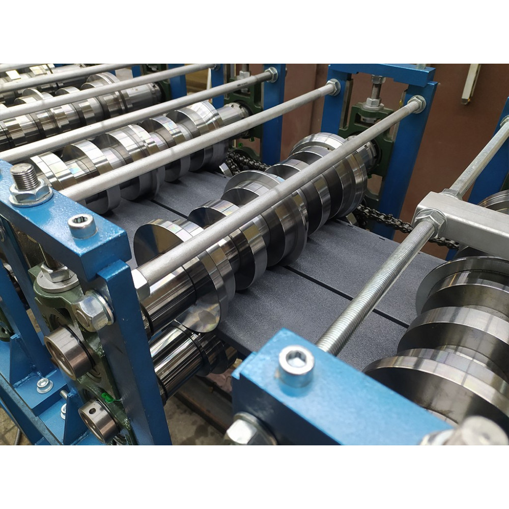 Линия для производства металлического сайдинга SPM-2 оснащена оснасткой для вырубки крепежных отверстий на краю панели.Прокатная часть станка состоит из 18 пар прокатных роликов обеспечивая высокое качество получаемой продукции.