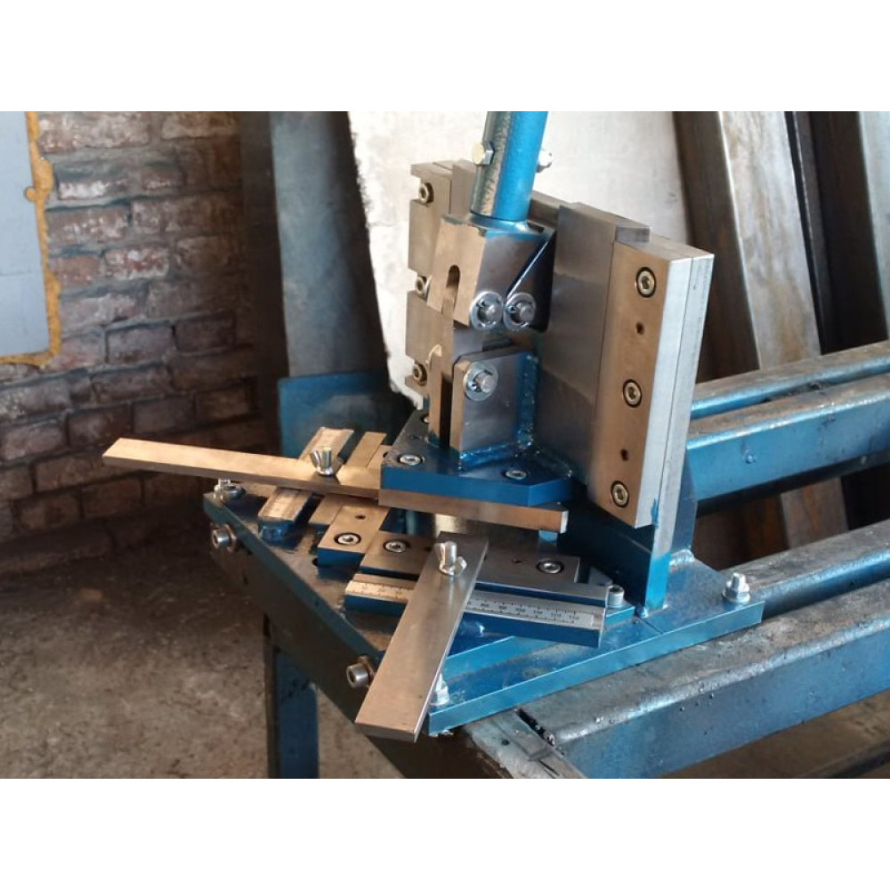 Высечной пресс для углов используется в процессе изготовления кассет и коробов из листового металла. Для того чтобы загнуть изделие с четырех сторон, то есть обогнуть его края вокруг определенной плоскости, предварительно края этого изделия должны быть подготовлены. Для возможности осуществления такого загиба, на углах листа предварительно вырезают углы, зачастую использую при этом простые ножницы по металлу. Это подходит при единичном изготовлении кассет-коробов. Когда же производитель сталкивается с определенными объемами требуемых работ, то тратить столько времени только на подготовку заготовки уже становится нецелесообразным. Именно для более эффективного выполнения этой операции мы и предлагаем использовать высечной пресс для углов нашего производства.